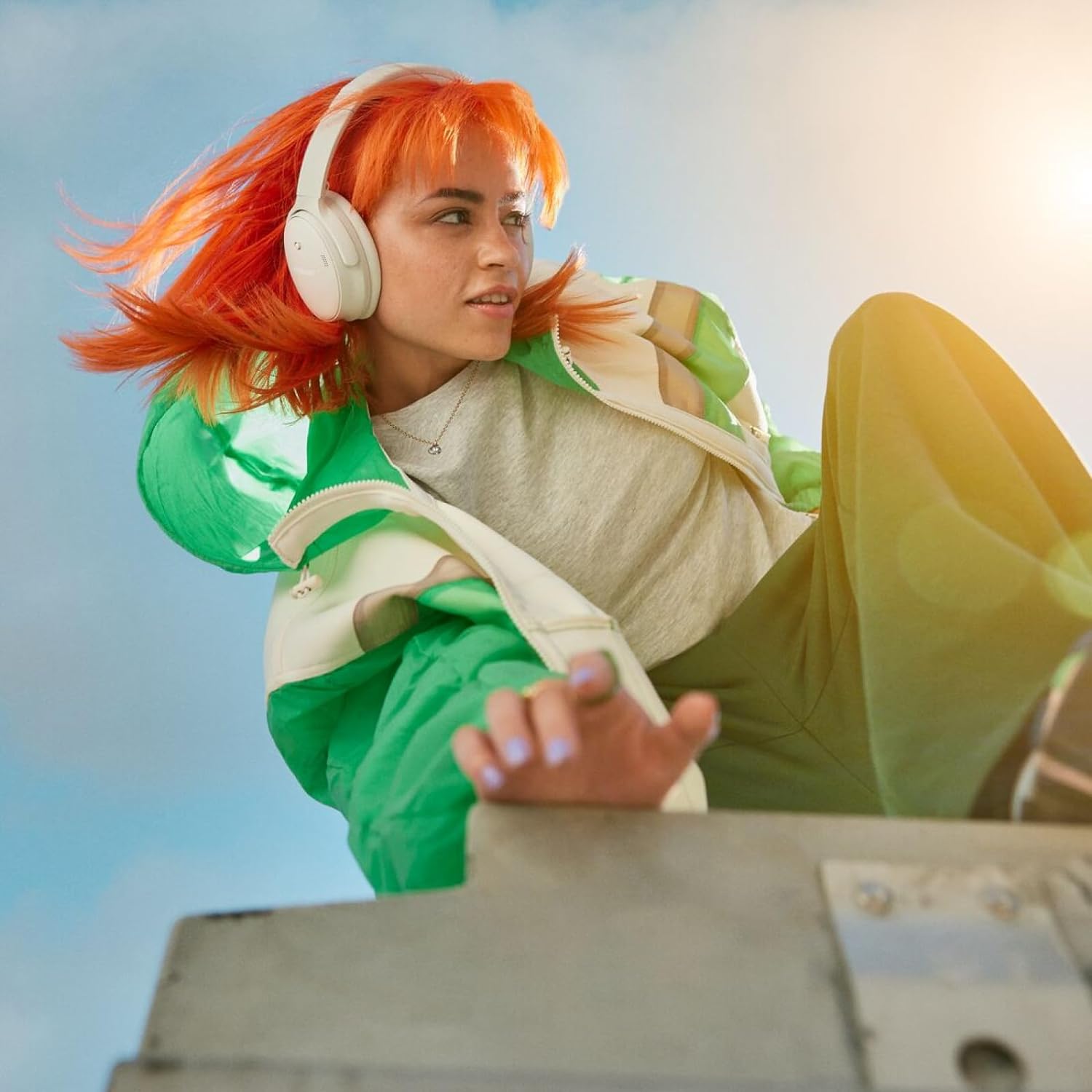 Go beyond the beat and take control of the sound that puts you on top of the world with Bose QuietComfort Wireless Noise Cancelling Headphones. Experience powerful high-fidelity audio with legendary noise cancellation in these wireless Bluetooth headphones that allow you to block everything out but the beat and control what you hear. These Bose wireless headphones feature new custom modes that give you the power to adjust noise cancellation based in the moment and the option to turn on Wind Block to tune out breezy environments. Or simply toggle your Bose over ear headphones between Quiet and Aware Modes for a quick change when the world calls for it. These Bose wireless headphones come in Black, White Smoke, and a striking limited-edition Cypress Green headphones color option that are as bold as they are iconic. Adjustable EQ puts you in control of tuning your music and Spotify Tap starts your listening session at the push of a button on the side of the over the ear headphones. With up to 24 hours of battery life on a single charge, your Bluetooth headphones are ready for any adventure. Multi-point toggle lets you switch between multiple wireless connections on these around ear headphones without disconnecting and reconnecting each time. Plug in the optional audio cable with in-line microphone into these wireless headphones to make the headphones wired and use without a Bluetooth connection. The Bose Music app guides you through setup, lets you personalize settings, and keeps your headphones’ software up-to-date. Press play and take charge of your music with Bose QuietComfort Noise Cancelling Headphones.